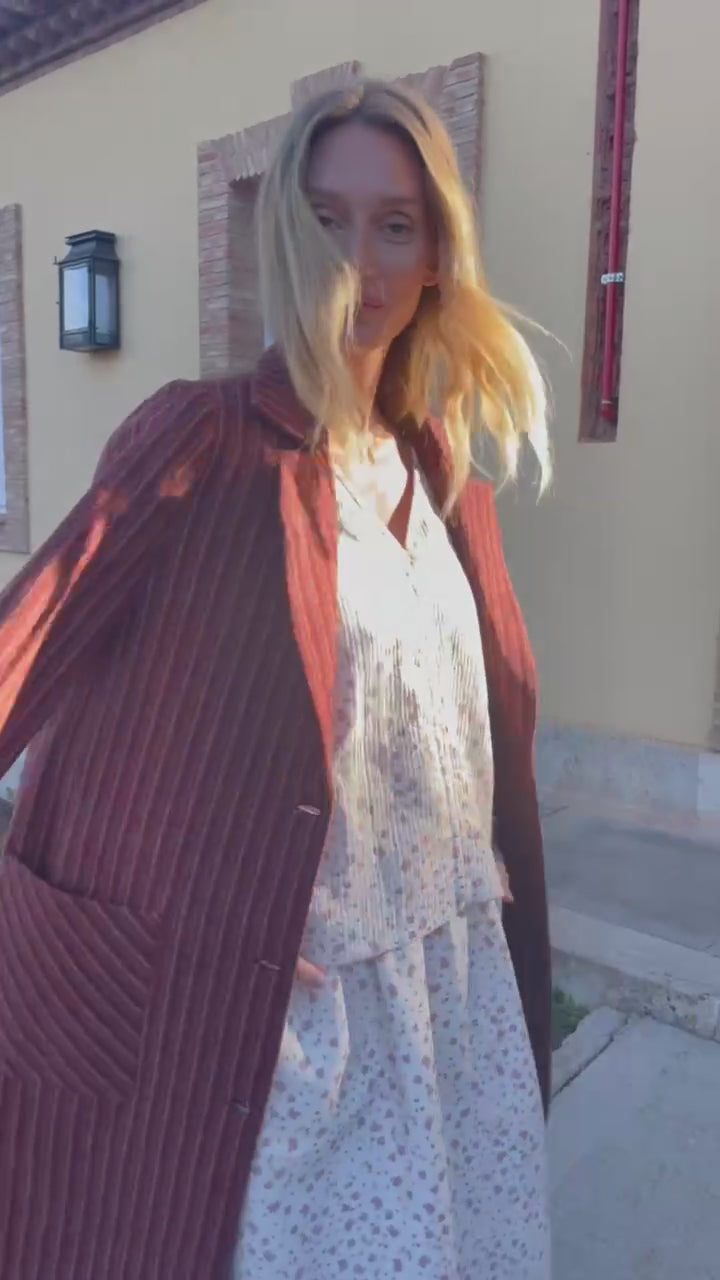 Oversized menswear-inspired coat with front patch pockets and back vent. Satin lining. A must-have this winter.