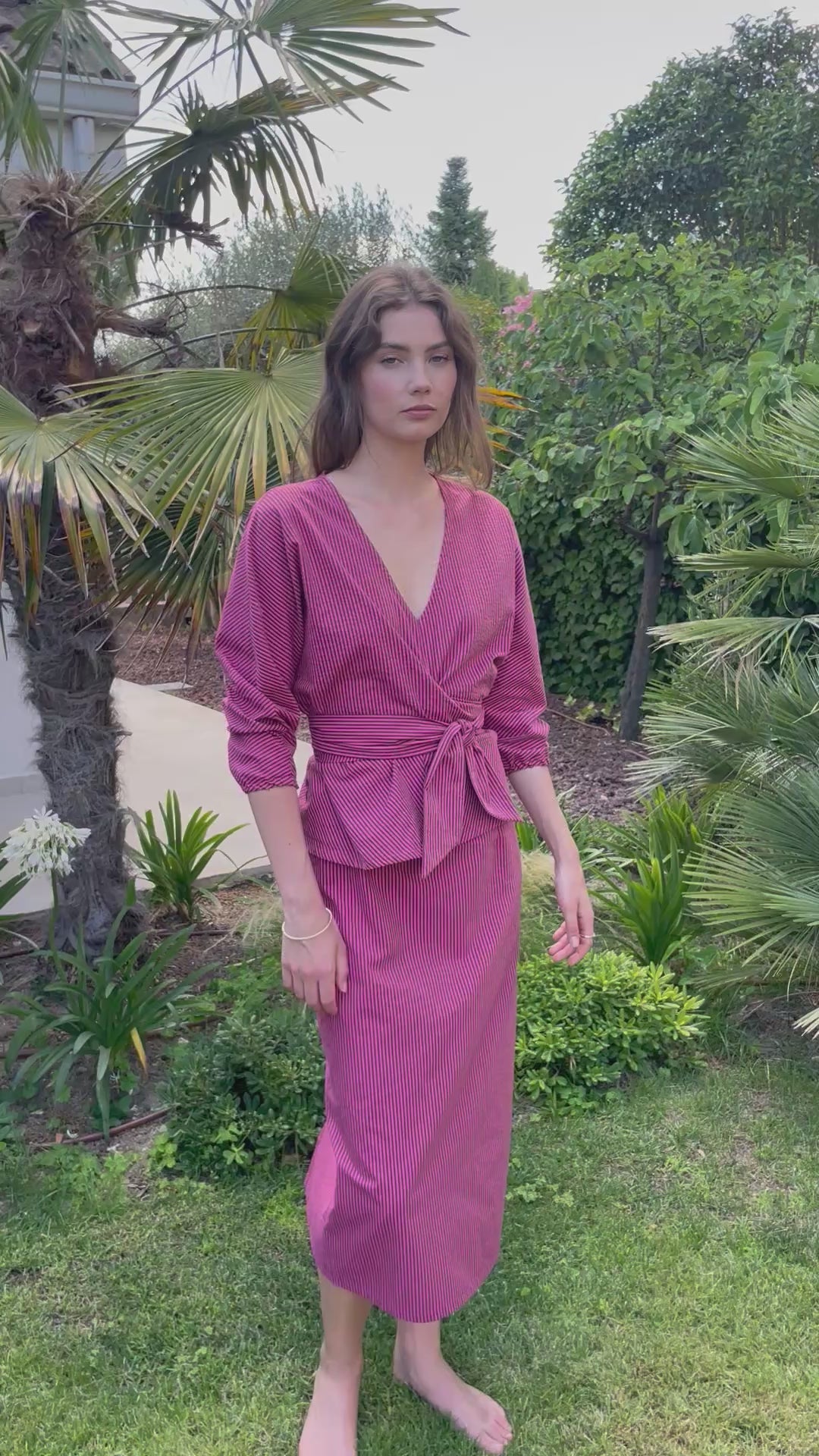 ALBA blouse with fine raspberry stripes