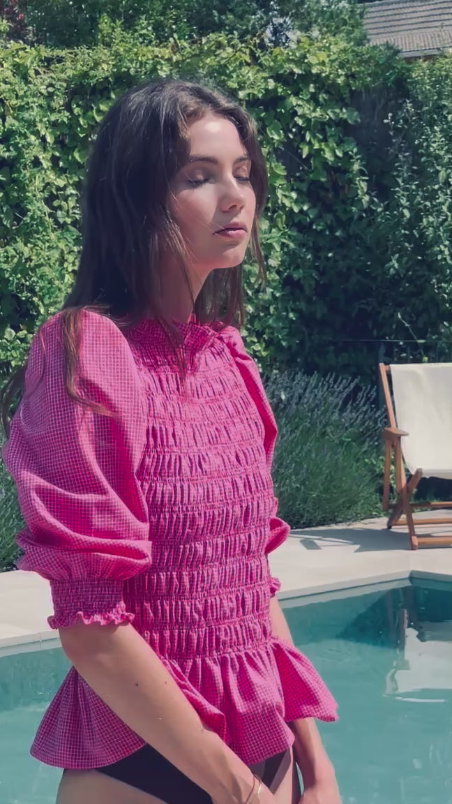 Uno de nuestros bestsellers revisitada esta temporada en tejido de algodón con mini cuadros vichy en tonos fucsia. Agatha es una blusa de fondo de armario perfecta para combinar con jeans. Elige tu talla habitual.