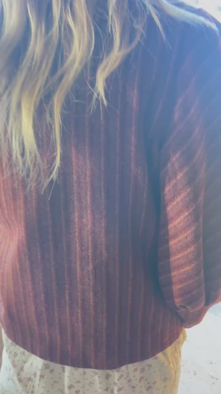 Chaqueta corta forrada, con doble botonadura. Cuello redondo. Manga dramática abullonada con puños. Realizada en paño de lana con rayas.