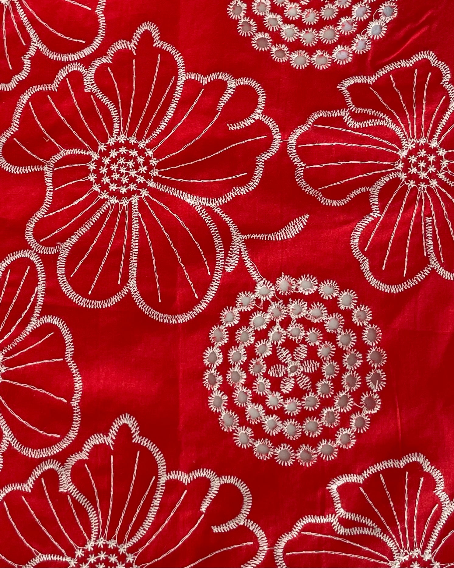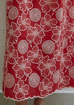 Su tejido en voile de algodón en tonos rojo anaranjado elevan la prenda