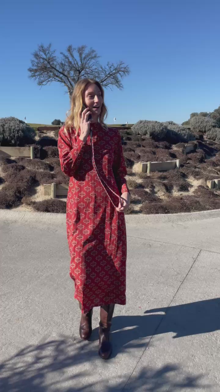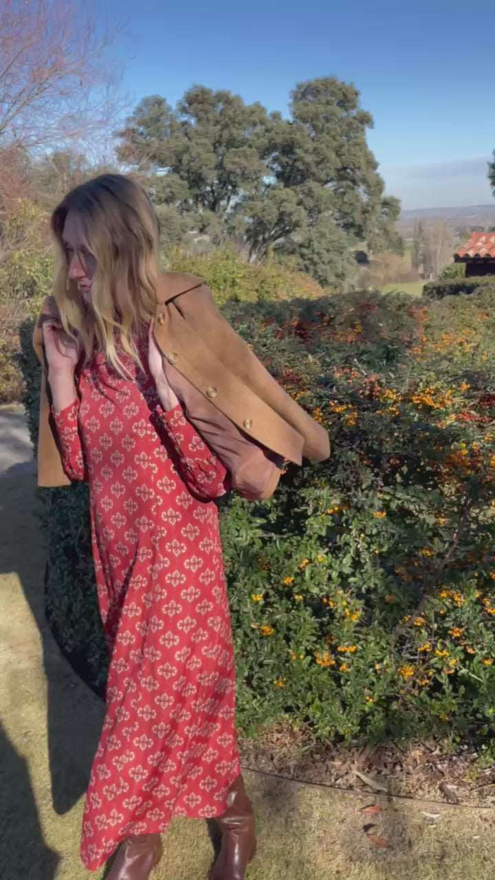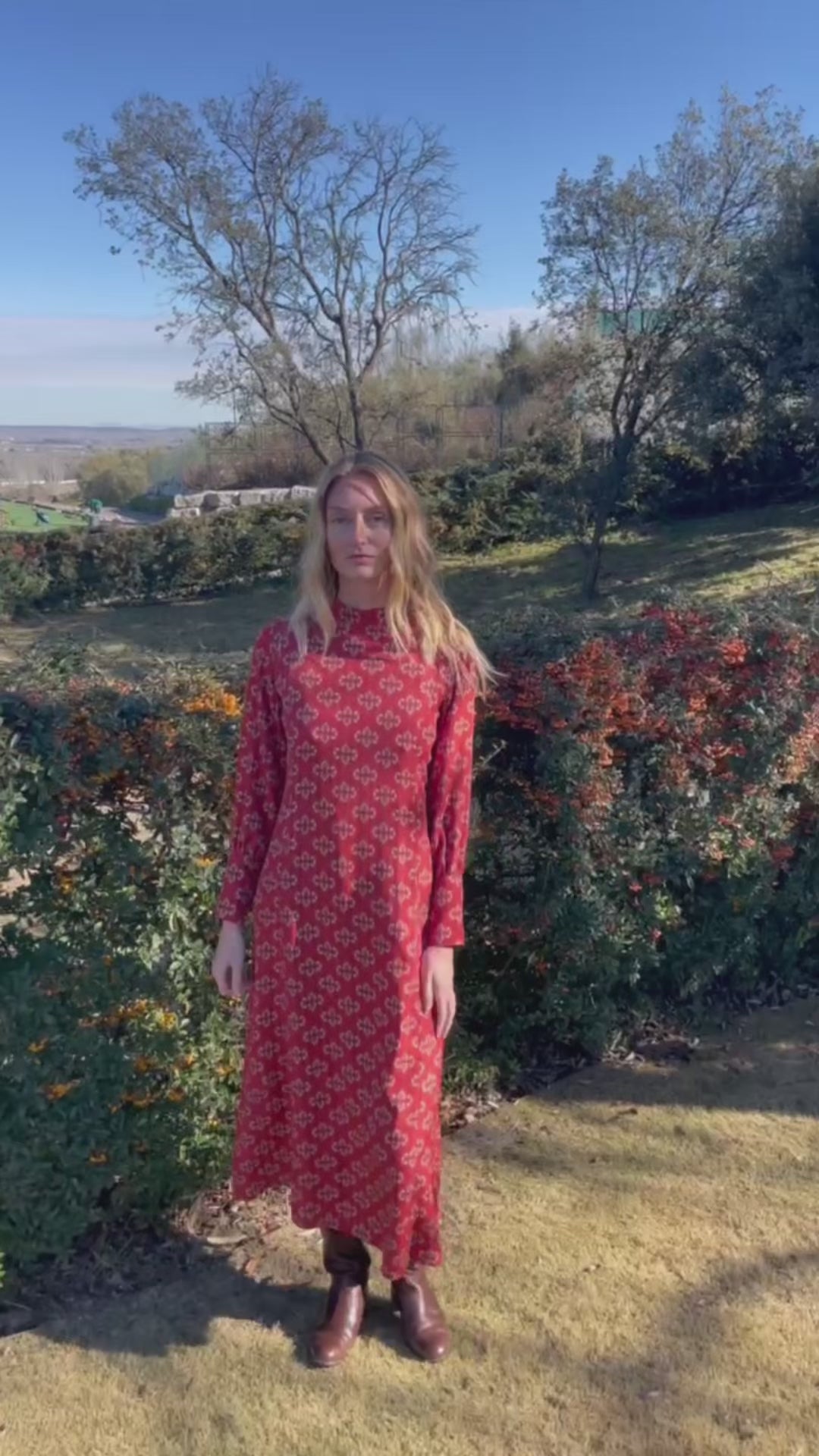 Vestido recto con corte debajo del pecho, parte de arriba queda ajustada mientras que la falda es evasé. Cuello chimenea y manga larga con puño. Un must de esta temporada.